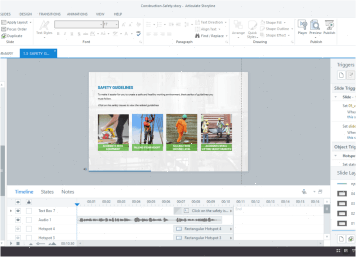 As messy as the accompanying screenshots might look, the actual development process was quite simple. The quiz with the timer was made by creating a new layer of 1 second duration and setting some triggers to alert the learner about the time left.